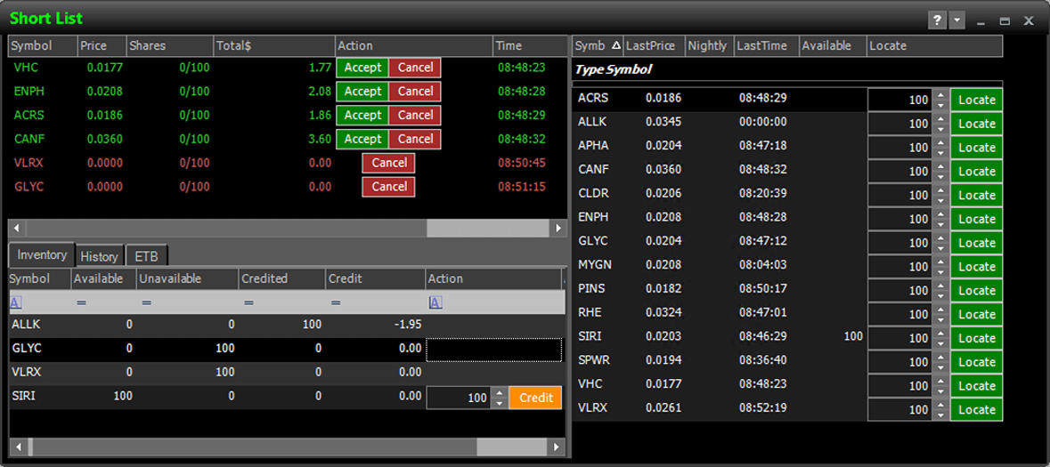 Traders can see locates per symbol that're both available & unavailable. Mark a locate for Credit.